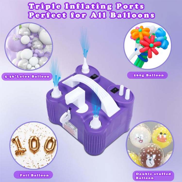 De nieuw geüpgraded 3 in 1 elektrische ballonpomp van NewShine® heeft een drievoudig professioneel ballondompelsysteem: 2 ronde latex ballonsproeiers passen nauwkeurig in 5-36 inch standaard latex ballonnen, waardoor ze gemakkelijk te gebruiken zijn voor alles van kleurrijke ballonwanden op verjaardagsfeestjes tot romantische ballonketens bij Weddings; 1 Uitgebreide professionele ballonmondstuk buigt aluminium en metalen filmballonnen op, knallende ballonnen, dubbele laag opblaasbare ballonnen en 260q/360q magische ballonnen, waardoor creatieve wendingen en vormen zoals dierenballonnen, bloemendecoraties en andere diy creaties mogelijk zijn. Eén pomp behandelt alle ballontypen.