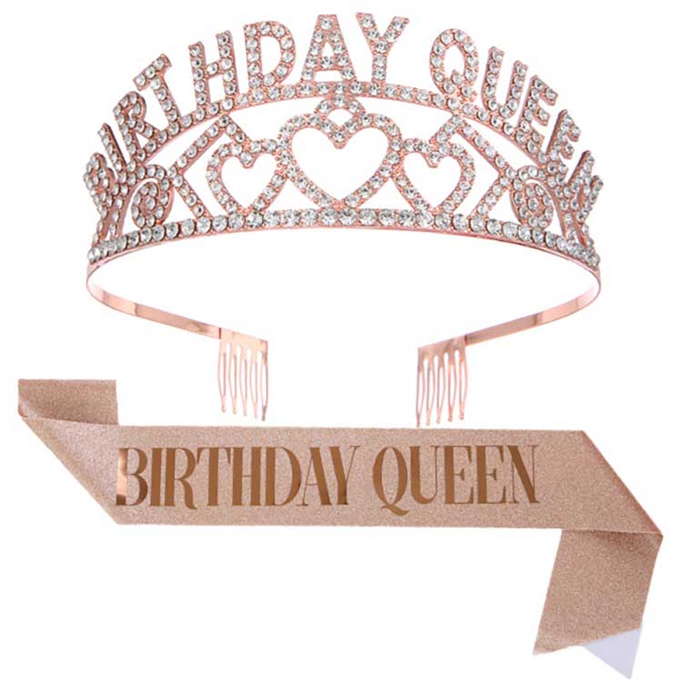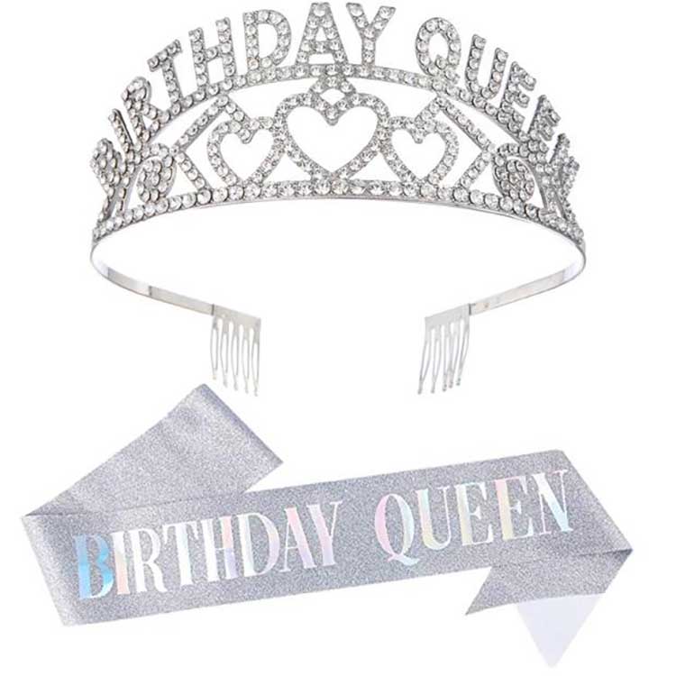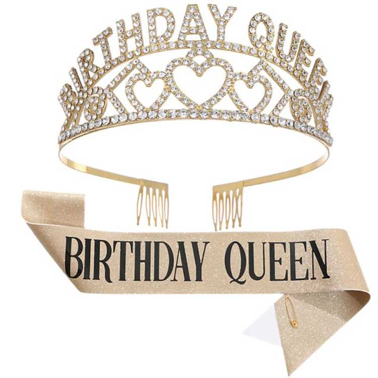 De Birthday Queen Crown is een hoofddeksel dat als set wordt geleverd met de schouderband. Het hoofdgedeelte van de kroon is gemaakt van een legering, waardoor deze niet vervaagt of beschadigd raakt. We hebben een inlegtechniek gebruikt om de diamanten aan het aluminium frame te bevestigen, zodat ze er niet gemakkelijk af vallen. Deze perfecte productkwaliteit garandeert dat u het bij toekomstige verjaardagsevenementen kunt blijven gebruiken.