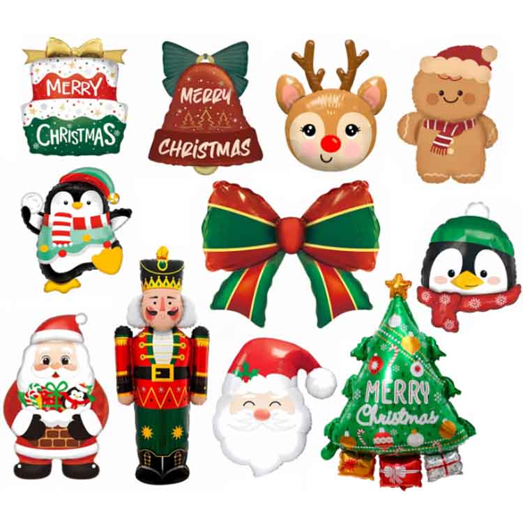 Kerstballonnen van aluminiumfolie bevatten kerstelementen in hun ontwerpen. Deze ballonnen zijn verkrijgbaar in klassieke vormen zoals de Kerstman, kerstbomen, sneeuwvlokken en bellen en zijn versierd met 'Merry Christmas'-slogans. De kleuren bevatten kerstelementen, voornamelijk met kerstthemakleuren zoals rood, groen, goud en zilver, waardoor een feestelijke sfeer ontstaat. Ze zijn verkrijgbaar in een breed scala aan maten, van mini 30 cm tot gigantisch 100 cm, en komen tegemoet aan een verscheidenheid aan decoratieve scenario's en behoeften.