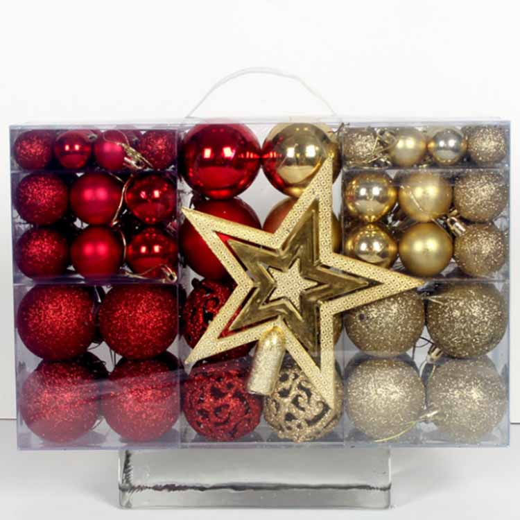 Kerstboomversiering Ornamentballen zijn samengesteld uit 101 verschillende decoratieve accessoires. Het bevat decoratieve ballen in verschillende maten en kleuren. Het kan je helpen het enthousiasme van kinderen volledig te stimuleren, hun verbeeldingskracht te ontwikkelen en hen in staat te stellen zelf-decoraties te maken, waardoor het gezin een onvergetelijke kerst kan beleven. De accessoires zijn gemaakt van dikke materialen die niet gemakkelijk beschadigen, en de decoratieve ballen hebben zowel matte als gladde oppervlakken. Hoewel het gebruikte materiaal dik is, is het niet zwaar en relatief licht, zodat de kerstboom niet buigt en de vorm niet wordt beïnvloed. Het maakt alles mooier en eenvoudiger.