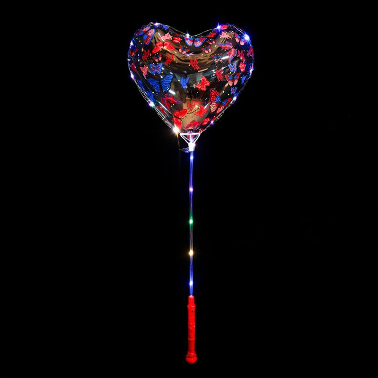 Vaak combineren we hartvormige bedrukte Bobo-ballonnen met handvatten of LED-lichtbakken. U kunt de kleur van het licht kiezen dat u nodig heeft.