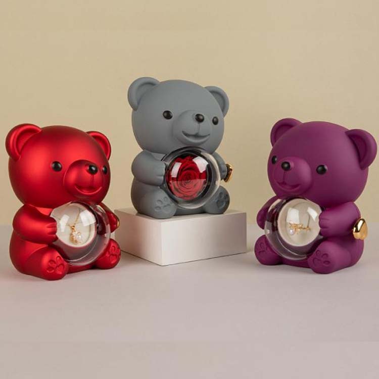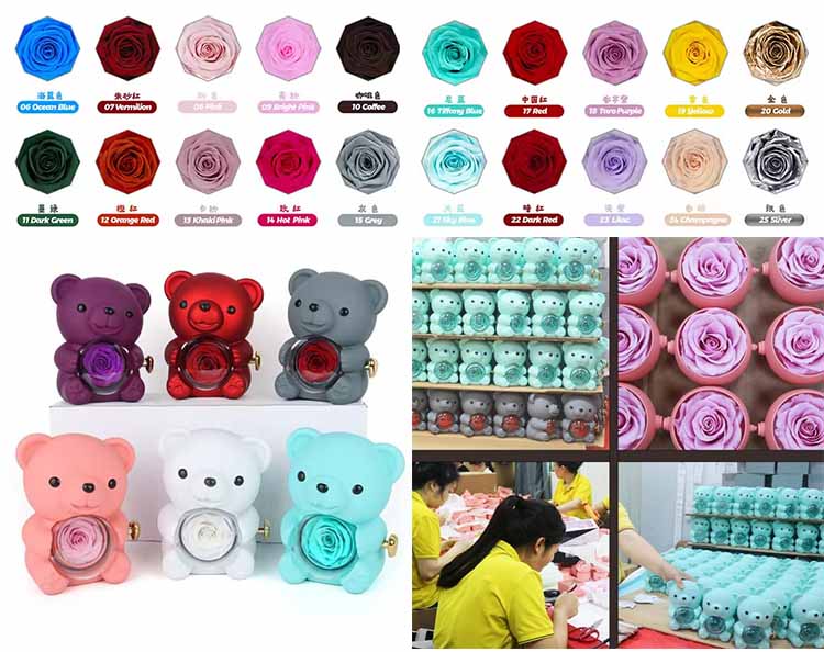 Tijdens het productieproces wordt een strenge kwaliteitscontrole uitgevoerd en elke Preserved Flower Surprise Knuffelbeer ondergaat meerdere kwaliteitscontroles. Na de productie voeren toegewijde kwaliteitsinspecteurs een grondige inspectie uit van het algehele uiterlijk, de ontwerpintegriteit en de gedetailleerde afwerking van de beer.