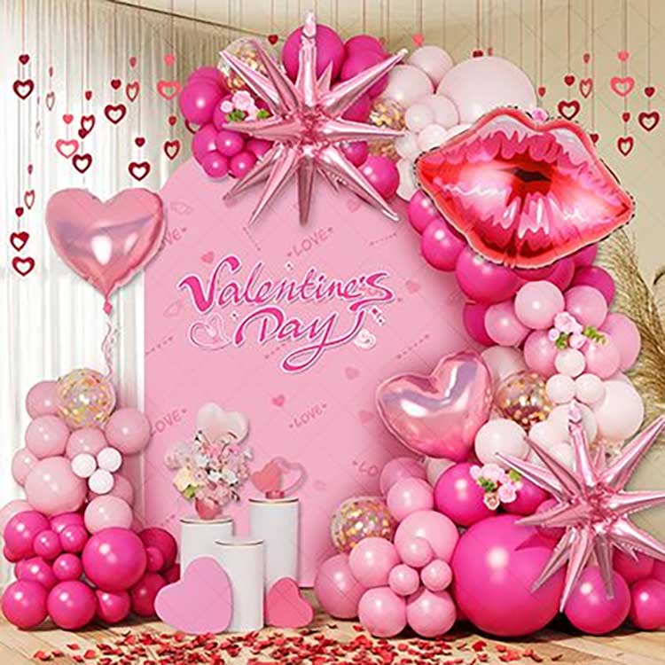 De Valentijnsdag-ballonnenslingerset bevat milieuvriendelijke latexballonnen en levendige folieballonnen, ontworpen voor langdurig gebruik. Bevat 50-80 latexballonnen in verschillende maten, plus 5-8 foliehart-/letterdecoraties. Het doe-het-zelfpakket bestaat uit ballonkettingen, plakstippen, lint en instructies. Eenvoudig te monteren voor zowel binnen- als buitengebruik.