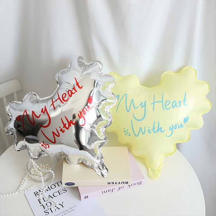 1. Uniek ontwerp: golvende randen voegen een creatieve draai toe aan de klassieke vorm van het hart, waardoor deze zich onderscheidt van een standaardballon.
